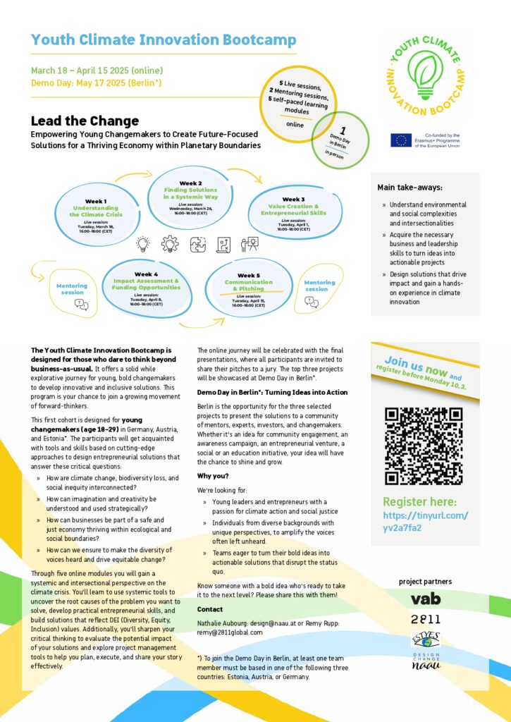 This international initiative brings together young changemakers to co-create bold solutions for climate and social challenges. Supported by the Climathon Advisory Board and funded by the Eupean Commission through the Erasmus+ Programme, the project connected partners from Germany, Austria, and Estonia.